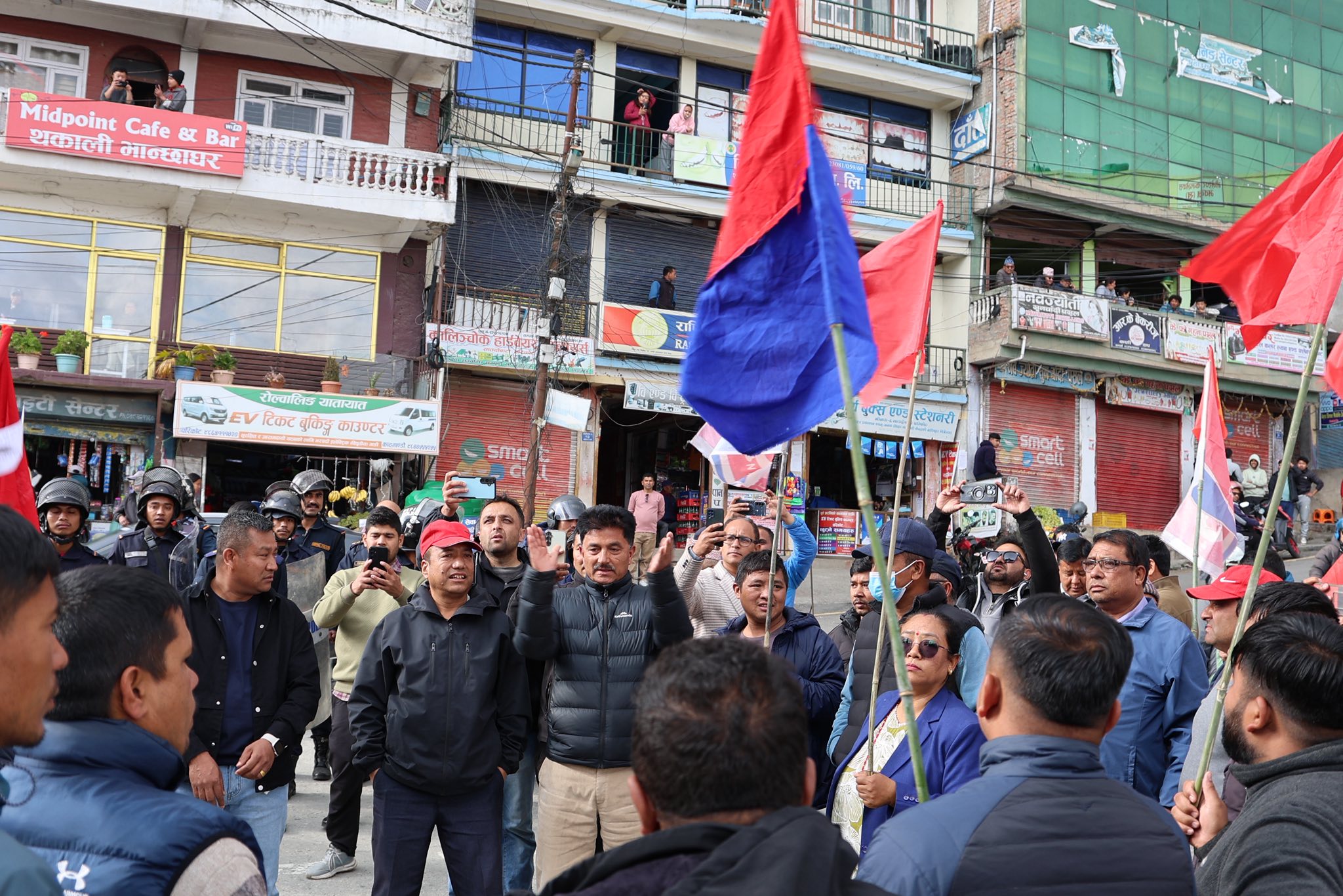 अगेनो न्यूज,चैत १४- नेकपा एमाले दोलखाले पार्टी अध्यक्ष एवं पूर्वप्रधानमन्त्री केपी शर्मा ओली र नेपाली कांग्रेसका नेता रमेश लेखकको गिरफ्तारीलाई प्रतिशोधपूर्ण र गैरकानुनी ठहर गदै आज सदरमुकाम चरिकोटमा विरोध गरेको छ । पार्टी अध्यक्ष एवं पूर्वप्रधानमन्त्री केपी शर्मा ओलीको रिहाईको माग गदै नेकपा एमाले दोलखाले आज जिल्ला सदरमुकाम चरिकोटमा प्रर्दशन गरेको हो । विरोध कार्यक्रममा नेकपा एमालेका नेता तथा कार्यकर्ताहरुको सहभगीता रहेको थियो । त्यस्तै नेकपा एमालेको केन्द्रीय सचिवालयको आकस्मिक बैठकको निर्णय अनुसार भोली बिहान १०ः३० बजे जिल्ला कमीटीको तर्फबाट जिल्ला प्रशासन कार्यालय मार्फत नेपाल सरकारलाई विरोधपत्र बुझाइने नेकपा एमाले दोलखाका अध्यक्ष नर बहादुर श्रेष्ठले जानकारी दिनुभयो । विरोध पत्र बुझाउने कार्यक्रममा जिल्ला कमीटीका सबै जना,जनसंगठन, तथा निर्वाचित जनप्रतिनिधि लगायतलाई अनिवार्य सहभागिताको लागि पार्टीले अनुरोध गरेको छ ।