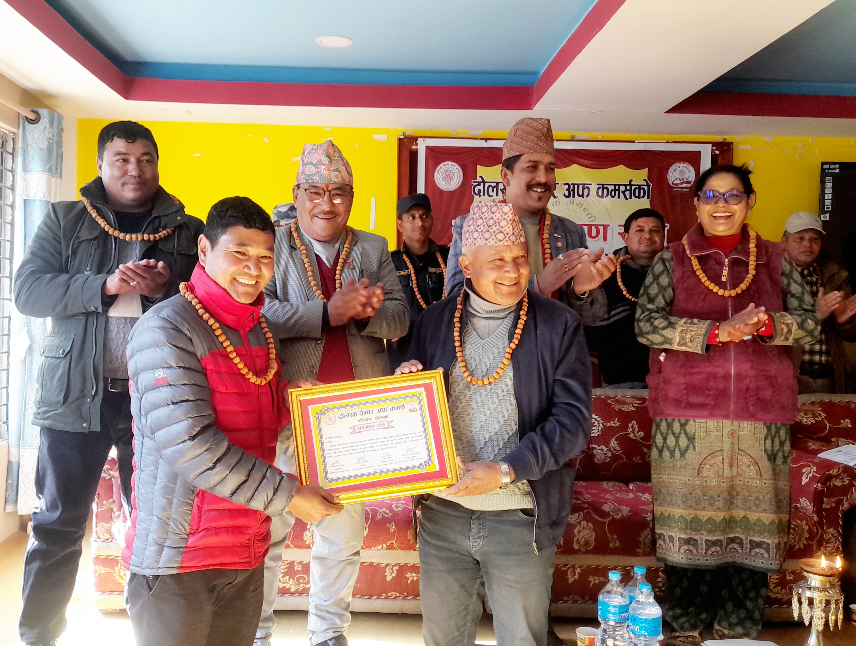 अगेनो न्यूज ः पुस २६- दोलखा चेम्बर अफ कमर्सको सातौ वार्षिक साधारण आज दोलखाको सदरमुकाम चरिकोटमा सम्पन्न भएको छ । दोलखा चेम्बर अफ कमर्स दोलखाका अध्यक्ष रुद्रजंग बुढाथोकीको अध्यक्षतामा भएको कार्यक्रममा संस्थाका सचिव कुष्ण नेपालीले वार्षिक प्रतिवेदन प्रस्तुत गर्नुभएको थियो भने कोषाध्यक्ष भरत बस्नेतले १० लाख १० हजार १ सय ६२ रुपैयाँ बराबर आर्थिक प्रतिवेदन प्रस्तुत गर्नुभएको छ। वार्षिक साधारण सभाको अवसर चेम्बर अफ कमर्स दोलखाका पुर्व सञ्चालक विरशङ्कर शाही,पत्रकार जीवन लामा उत्कृष्ट सदस्य अनिता खडका र ईन्द्रमान प्राखिनलाई सम्मान गरिएको छ । वार्षिक साधारण सभामा भीमेश्वर नगरपालिकाका मेयर ईश्वर नारायण मानन्धर,भीमेश्वर नगरपालिकाका उपमेयर कमला बस्नेत ,चेम्बर अफ कमर्सका केन्द्रीय सदस्य विष्णु श्रेष्ठ,दोलखा जिल्ला होटल तथा पर्यटन विकास संघ दोलखाका अध्यक्ष कुमार श्रेष्ठ, नेपाल पत्रकार महासंघ दोलखाका सचिव सुर्जन काफले,संस्थाका बरिष्ठ उपाध्यक्ष पुरुषोत्तम ठकुरी, दोलखाका उद्योग वाणिज्य संघ दोलखाका रामशरण बस्नेत लगाएतले मन्तव्य व्यक्त गर्नुभएको थियो। २०७४ सालबाट सञ्चालन भएको संस्थामा हाल २ सय १८ जना सदस्य रहेका छन्।