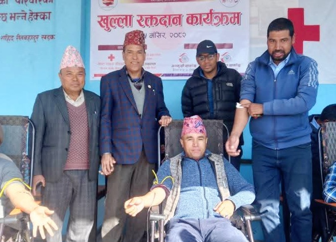 अगेनो न्यूज ःमंसिर ५-दोलखाको वैतेश्वर गाउँपालिकाको मैनापोखरीमा आज खुल्ला रक्तदान कार्यक्रम आयोजना गरिएको छ । दोलखाको वैतेश्वर गाउँपालिका वडा नम्वर ५ मैनापोखरीमा रहेको जनसचेतन बचत तथा ऋण सहकारी संस्था,जनमुखी बचत तथा ऋण सहकारी संस्था, नेपाल रेडक्रस सोसाईटी काब्रे उपशाखाको संयुक्त आयोजना र नेपाल रेडक्रस सोसाईटी जिल्ला शाखा दोलखाको प्राविधिक सहयोगमा भएको रक्तदान कार्यक्रममा ३७जनाले रगतदान गर्नु भएको रक्तसञ्चार समिति दोलखाका संयोजक गोकर्णप्रसाद पोखरेलले जानकारी दिनुभयोे । उहाँँका अनुसार कार्यक्रममा २८ जना पुरुष र ९ जना महिला गरी ३७ जनाले रगतदान गर्नुभएको हो । जिल्लामा रगत अभाव हुन नदिनका लागि हरेक महिना कार्यतालिका अनुसारनै रक्तदान कार्यक्रम हुने गरेको छ । नेपाल रेडक्रस सोसाईटी काब्रे उपशाखाका सभापति राजन दाहालको अध्यक्षतामा भएकोे कार्यक्रममा वैतेश्वर गाउँपालिका वडा नम्वर ४ का वडा अध्यक्ष कुमार चौलागाई,जनमुखी बचत तथा ऋण सहकारी संस्थाका अध्यक्ष माधव प्रसाद दाहाल,सचिव लक्ष्मण चौलागाई,जनसचेतन सहकारी संस्थाका कोषाध्यक्ष राजेन्द्रप्रसाद ढुङ्गेल र जनसचेतन सहकारी संस्थाका लेखा अधिकृत नविन्द्र रिमालले मन्तवय व्यक्त गर्नुभएको थियो ।